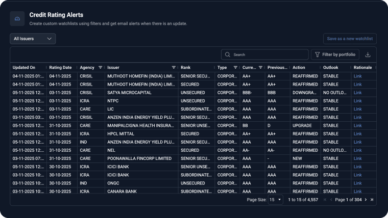 Receive instant rating alerts and updates for proactive risk monitoring